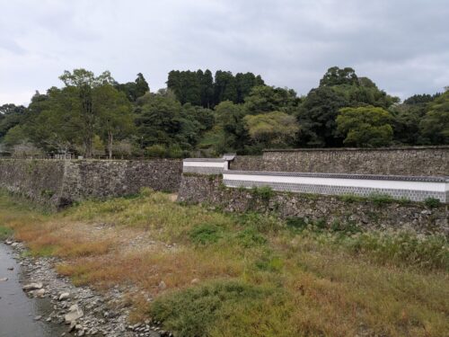 14:51 人吉城は市内中央部を流れる球磨川の南側に位置し、球磨川とその支流胸川の合流点の山に築かれており、北側と西側は球磨川と胸川を天然の堀とし、東側と南側は山の斜面と崖を天然の城壁として、巧みに自然を利用しているそうです。